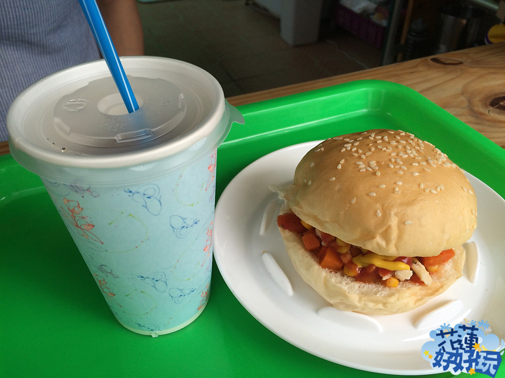 今天簡單點了雞肉漢堡和飲料(亞馬酷吉),漢堡內餡是自調的雞內和配菜,加了小辣,味道更佳,飲料喝起來和舊店時一樣,薑茶加檸檬的味道