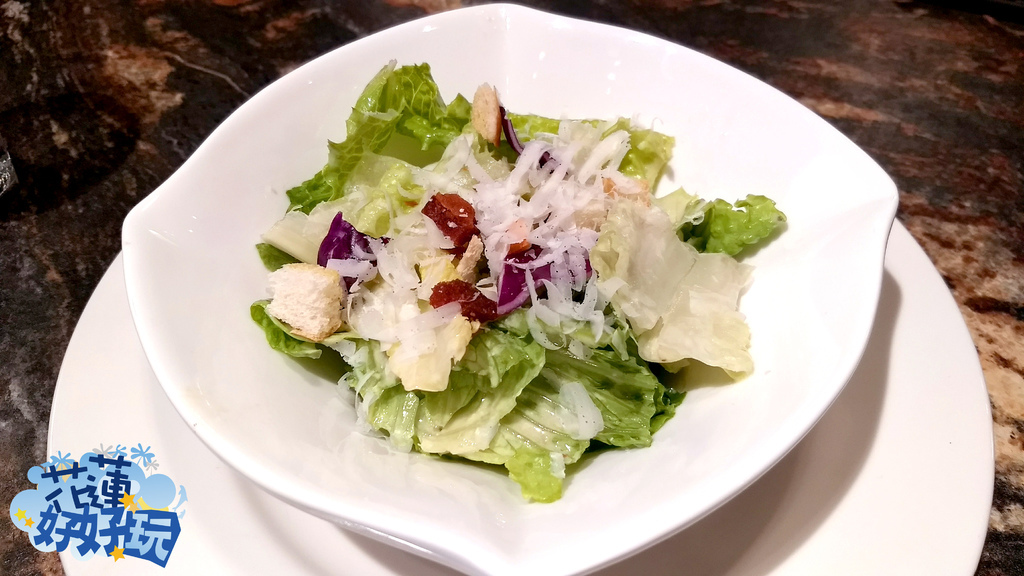 凱薩沙拉蔬菜的清脆度、新鮮、沙拉醬的酸甜都有著很不錯的調和,可說是非常讚的開胃菜!
