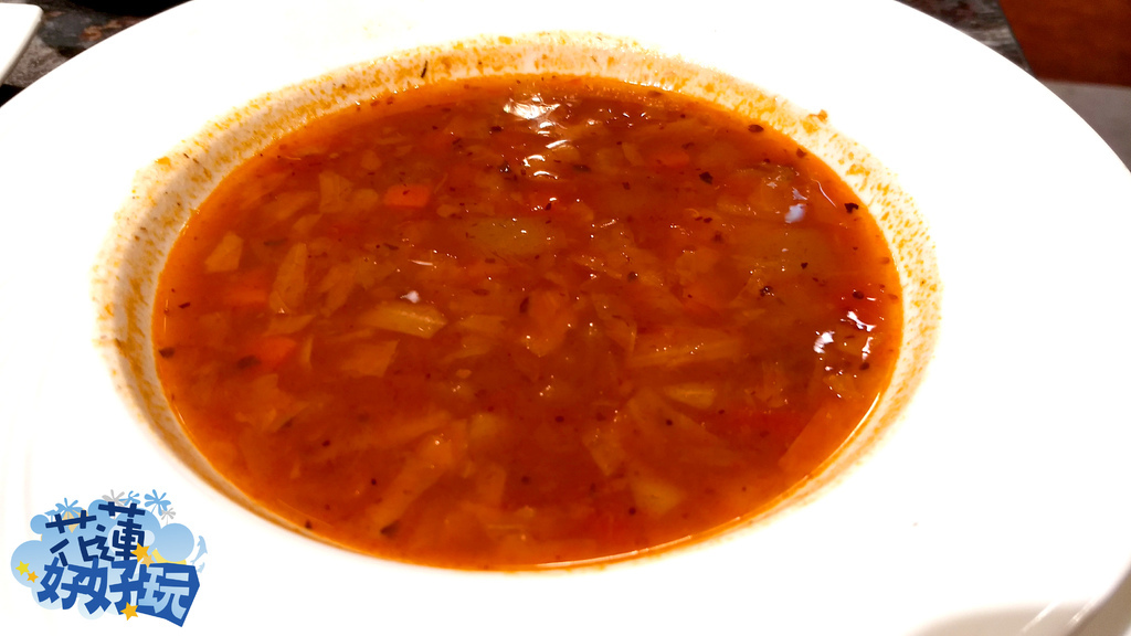義式蔬菜湯則是標準番茄、蔬菜以及馬鈴薯,湯頭有把蔬菜的清甜帶出來,而馬鈴薯則是有做到幾乎入口即化的程度,讓肥編不知不覺就把湯品先乾為快!