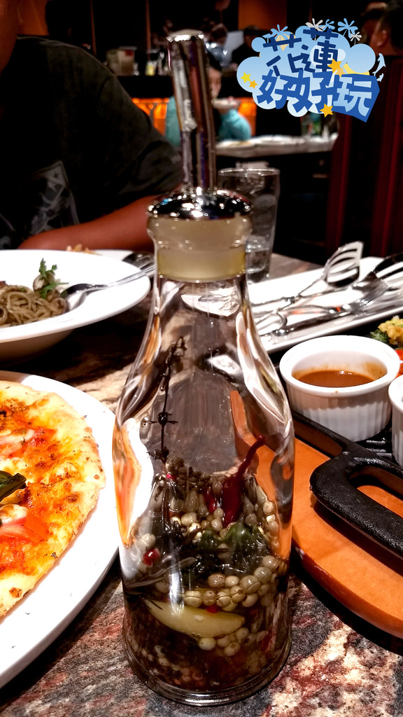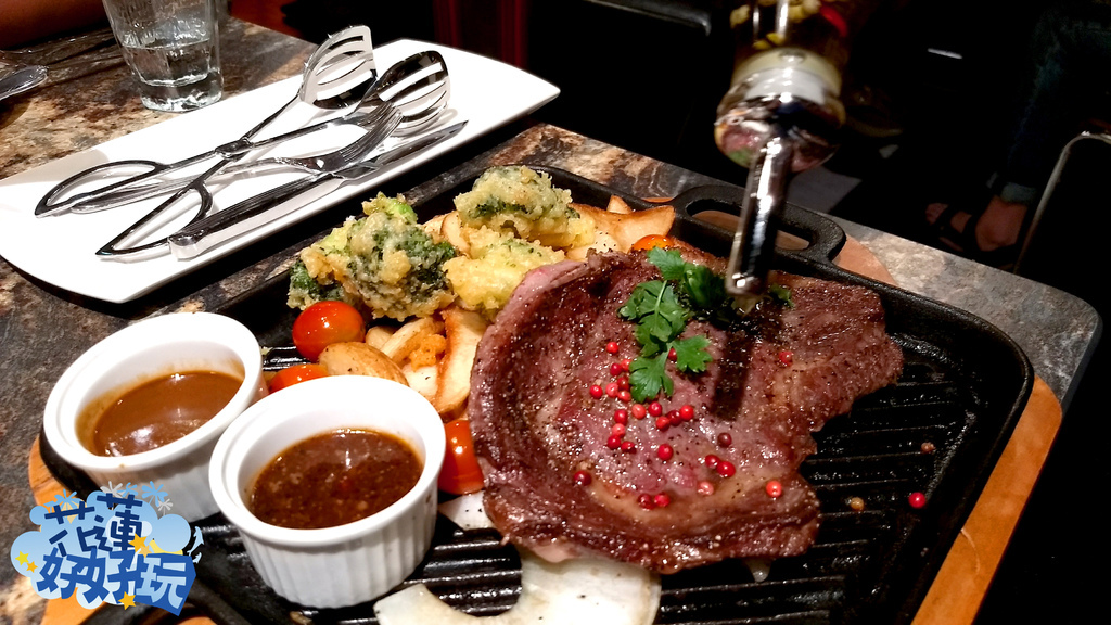 上方有提到,不僅是「羅馬饗宴」套餐,我們還另外加點了500元的「冷藏熟成Prime安格斯牛排」,餐前還會淋上古拉爵特調的橄欖油。不得不提一下,Prime是指美國農業部(USDA)牛肉評級的極佳級,比特選級Choice還高上一層次,無論嚼度、嫩度,都是一等一口感,搭配附上的牛排醬和馬鈴薯條,很快就被我們給分食殆盡。