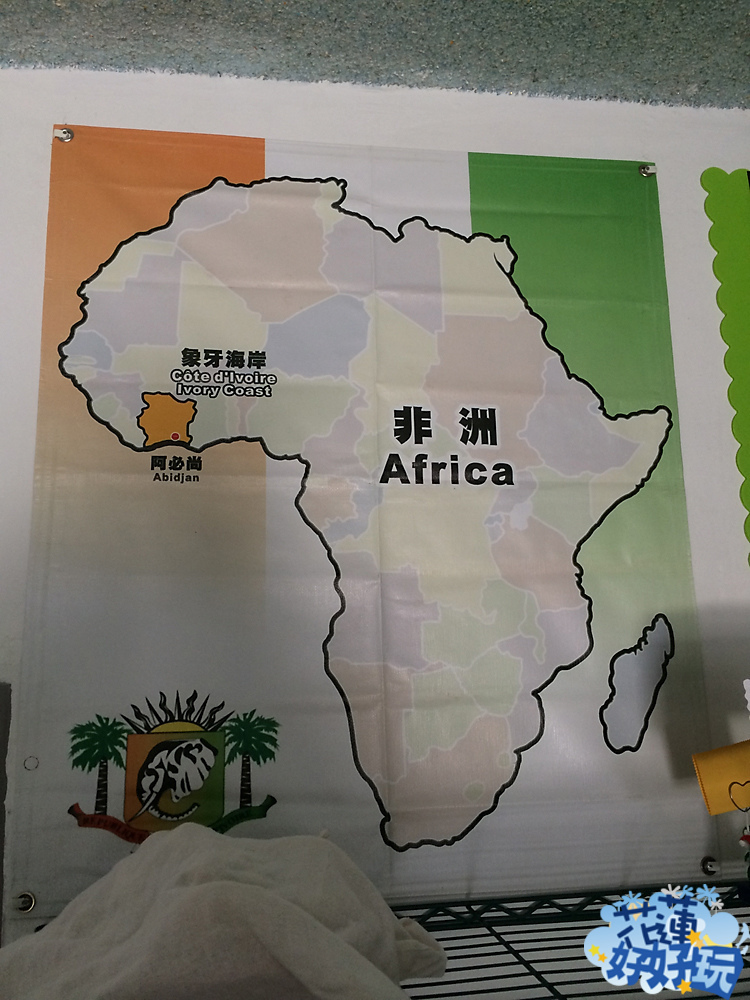 店內佈置也是DIY風格,簡單的吧檯和座位區,店內用餐位置不多,有些裝飾品大概和非洲有關,牆上也掛了象牙海岸的地圖,讓人更清楚老闆國家的地理位置了,店內放著音樂,算是營造了非洲的氣氛了